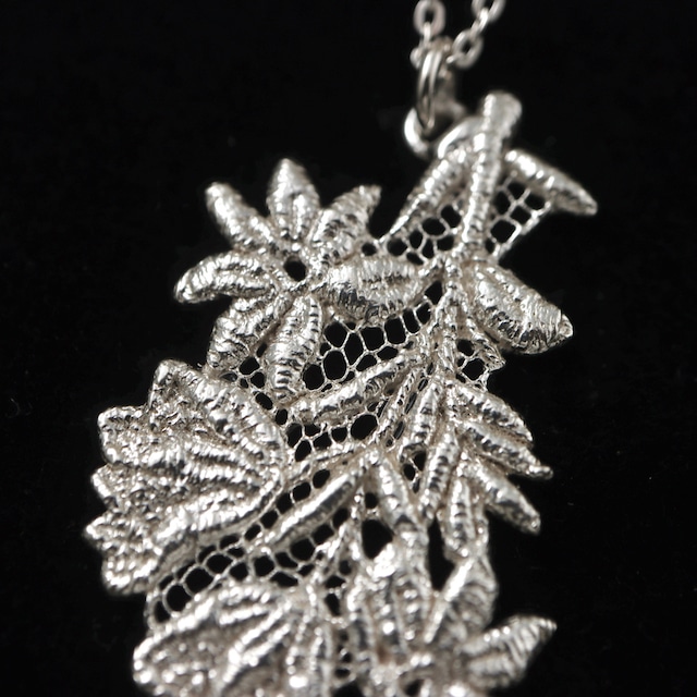 選び抜かれたヨーロッパのアンティークレースから型を取り、地金を流し込む技法を用いてひとつひとつ熟練の手作業で制作しています。